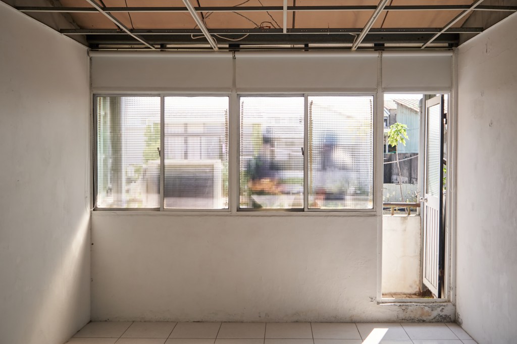 On the outer side of the glass, a layer of transparent film is applied —capturing the scenery outside the window and processing a mosaic effect to the image. The processed image is overlaid onto the mosaic glass, where the physical grids intersect with the digital grids of the photograph. Illuminated by natural light, the subtle nuances may not be immediately noticeable from the interior perspective. However, gazing back from the balcony into the interior, the scenery behind is reflected onto the window.
