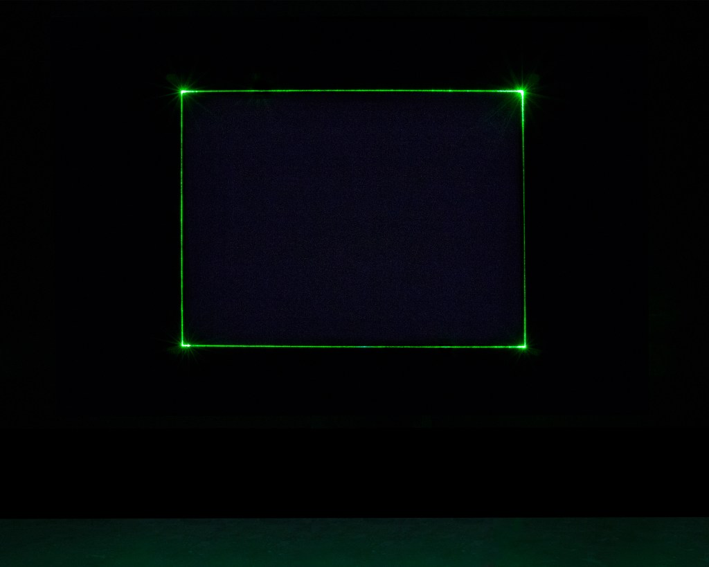 這件作品以集中的雷射光束把影像黑色平面的框強調出來,思考光與影像與邊框之間的相互關係。