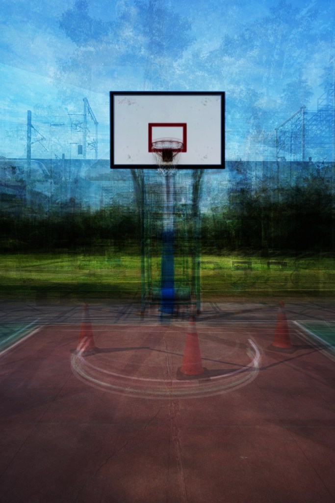 此次拍攝從不一樣的視角建構個人對於城市的印象,以籃球運動與河堤空間為關鍵字,肉身的拍攝仿擬機器訓練圖像的路徑,沿著大臺北主要的河道,共記錄82座球場,494張照片,分別勾勒出大漢溪、新店溪、疏洪道、淡水河與基隆河的河濱市景。