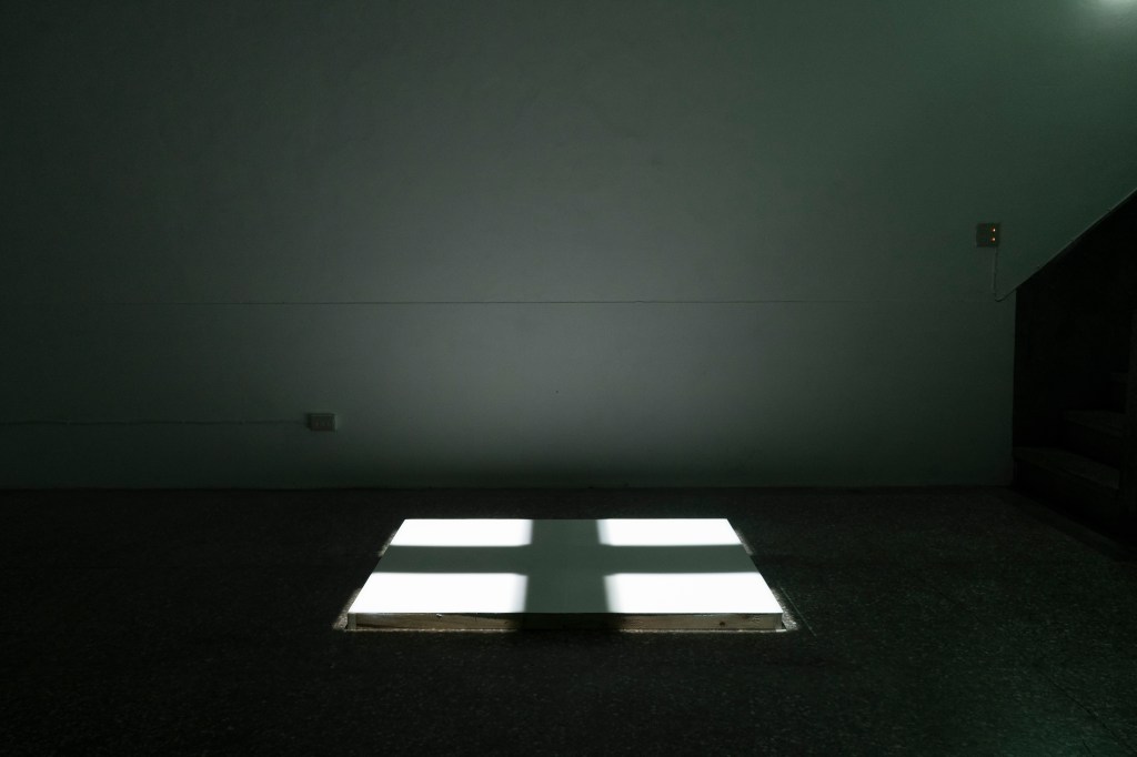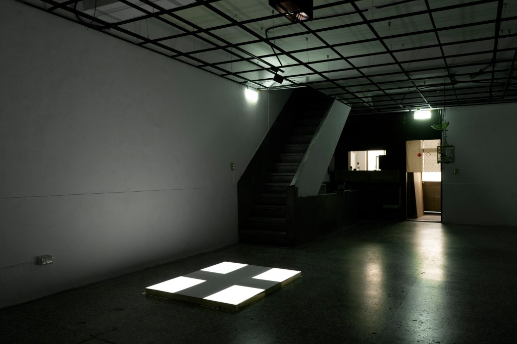 以投影機的光和投影畫面,虛實交錯地呈現出一個假想中機械裝置的狀態,同時使用投影機與現場空間的特性,呈現一種模擬真實,很細微的狀態。藉此挑戰影像不同的可能性。這件作品的本質上像是在「玩」投影機:你說這面投影是一個影像,它的內容又是在模擬真實的一面光;你說投影本體就是一面光,它又可以透過影像產生空間—如此來討論影像的虛實。創作者對於一個媒材如戀物癖式的執著,彷彿現代主義及低限主義那種對於媒材的追求極致,當然,不同於繪畫的脈絡,我們更傾向於對某物的迷戀,在不斷的操弄過程中,將媒材作為一個「工具」,而我們更在乎的是以什麼「方法」去使用它,媒材本身是否可以創造新的可能性。