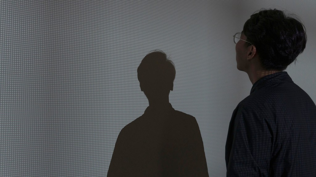 I wonder why the light from projections would be seen as images. Generally, when a projector casts white light only, there will be grids of pixel on screen. This seems the basic difference between projection and general light. I imagine that if I keep enlarging these pixels, and what will it become in the end? It’s darkness, the light of black. The whole process is a moving image.